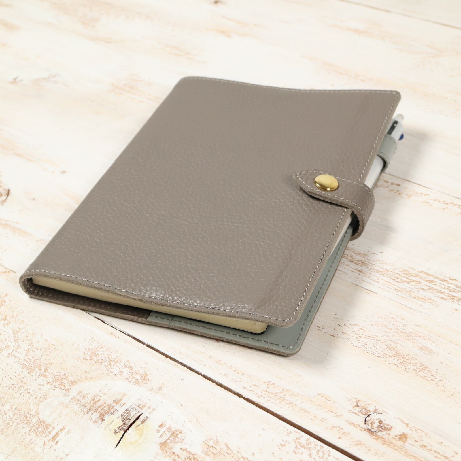 グレージュのイタリアンレザー牛革で制作された手帳用カバーです。
